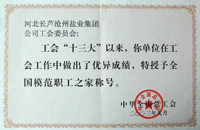 全國模范職工之家稱號