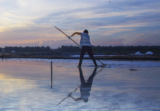 李建勇 50年前的今天,伴著雷鳴般的鞭炮聲,一群喊海的漢子,迎著共和國的晨曦,喚醒沉睡多年的燕趙大地,萬頃荒灘變鹽田。 50年后的今天,一座座銀山閃爍著曦曦光芒。你是中華鹽文化史中的瑰寶。把海水堆成山...