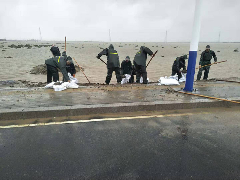 幾個晝夜中,公司領導班子不間斷巡查汛情危險地段和各個排淡下口,查看和掌握水位及流量情況,漲潮時及時安排排淡閘關閉,退潮時及時提開閘門,確保了潮水不倒灌,淡水及時排出,并和各相鄰單位溝通協(xié)調,開辟新的排淡路線,盡快消除汛情、險情。8月9日晚到13日,整個長蘆鹽業(yè)公司生產區(qū)汛情不斷,防汛突擊隊和制鹽一線全體職工晝夜巡邏,及時搶險。據(jù)統(tǒng)計,本次搶險救災共用編織袋21000余條,鐵絲500余公斤,葦席900余領,木樁2000余根,動用挖掘機14臺、鏟車7臺,機械搶險95小時,投入搶險人員2700人次,竭盡全力消除淡水壓灘的險情。重大災情面前,長蘆鹽業(yè)公司顧全大局,為保障渤海新區(qū)港城區(qū)雨水及時外排,制鹵二工區(qū)階段性封閉了淡水排放口,又及時在一揚揚水站為新區(qū)排水提供供電,并且主動降低滄海公園水位,保證港城排水設備正產運轉、免遭高水位損壞,為港城居民正常生產生活貢獻力量,體現(xiàn)了高度的責任感和愛崗奉獻的滄鹽精神。在歷史罕見的超強臺風、特大暴雨面前,長蘆鹽業(yè)公司全體干部職工無畏無懼,搏風擊雨,沒發(fā)生任何外圍淡水壓灘現(xiàn)象,竭盡全力減少鹽斤、塑苫、企業(yè)財產損失。