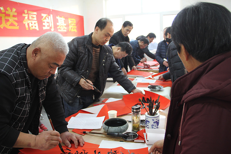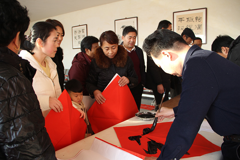 集團公司黨委委員、紀(jì)委書記狄彬親自帶領(lǐng)集團公司書法志愿者,分別在青鋒農(nóng)場和原二分場大院,進(jìn)行了現(xiàn)場書寫,受到青鋒群眾及公司職工的歡迎。一幅幅喜慶的春聯(lián),一張張熱情的笑臉,伴隨著愉快的笑聲,活動現(xiàn)場充滿歡樂祥和的氣氛。