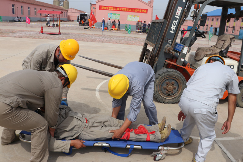 本次參加救援演練人員達40余人,模擬了機械傷害、中暑、觸電、火災(zāi)、溴素燙傷、氯氣泄露等六個應(yīng)急處置場景。通過此次實戰(zhàn)演練,提高了公司應(yīng)急反應(yīng)和救援處置能力,筑牢了安全生產(chǎn)最后一道防線,為進一步完善集團公司事故應(yīng)急管理體系奠定了堅實的基礎(chǔ)。演練前,還進行了消防技能、正確穿戴空呼機、正確穿戴全封閉防化服、穿戴空呼機30米跑等四項競賽比武。