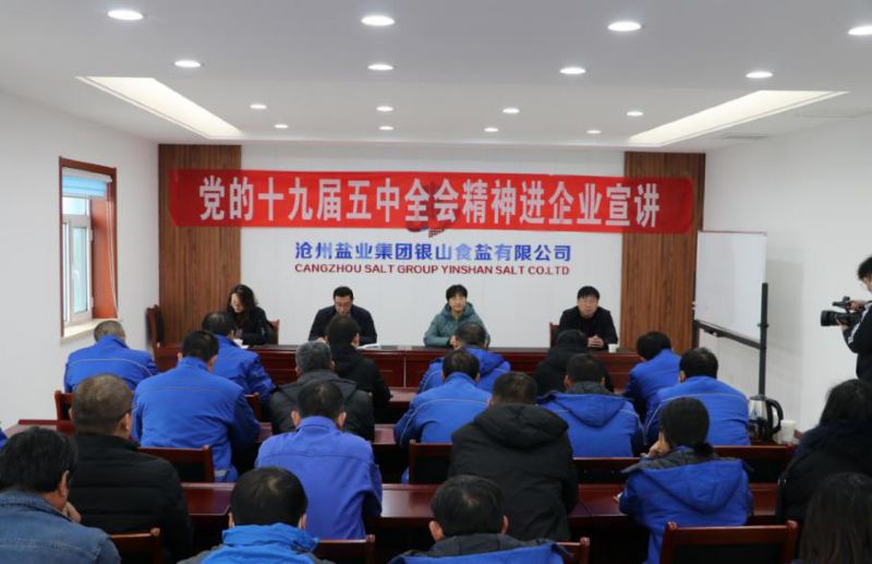 12月29日,黃驊市科技工信和商務(wù)局宣講團分別來到長蘆公司、銀山食鹽公司進行“黨的十九屆五中全會精神進企業(yè)宣講”活動,兩公司副科級以上管理人員、部分生產(chǎn)骨干參加了學(xué)習(xí)。