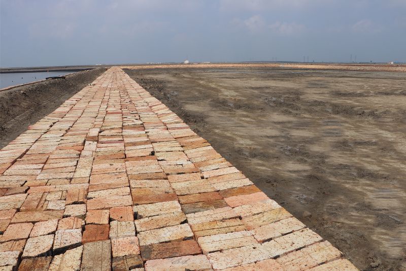 為了確保工程如期完工,長(zhǎng)蘆公司全體干部職工放棄節(jié)假日休息,克服施工期間降雪、大風(fēng)降溫等極寒天氣影響,加班加點(diǎn)、全力以赴趕進(jìn)度,于2021年1月11日,順利完成了14個(gè)技改保鹵池共1184公畝的機(jī)械成埝,人工護(hù)磚工作。在施工期間,因環(huán)保要求,紅磚進(jìn)場(chǎng)工作幾度停止。工貿(mào)公司積極協(xié)調(diào)供貨方,根據(jù)每個(gè)施工現(xiàn)場(chǎng)工程進(jìn)度,合理調(diào)配用磚;生產(chǎn)部嚴(yán)把工程質(zhì)量,加大巡查力度,發(fā)現(xiàn)問題及時(shí)解決;安全部對(duì)施工現(xiàn)場(chǎng)設(shè)備、人員及時(shí)進(jìn)行檢查、培訓(xùn),確保了施工安全。