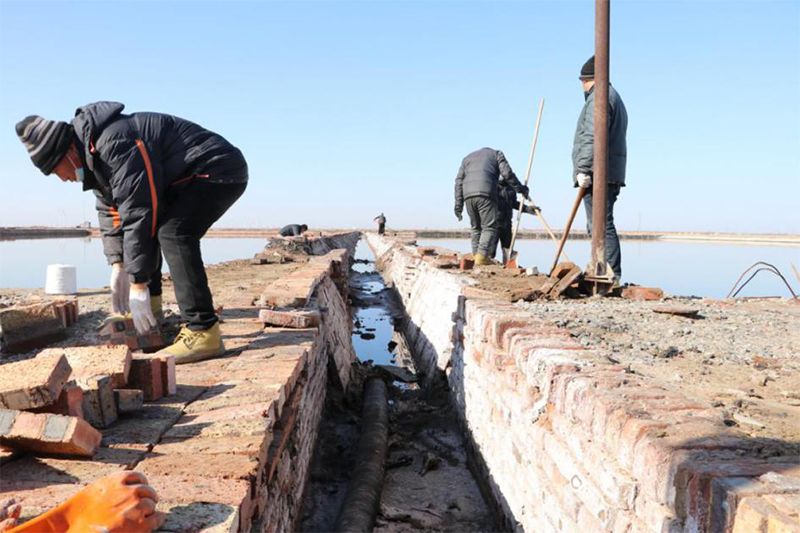 青鋒鹽業(yè)公司本著修一得一的原則,夯實(shí)生產(chǎn)基礎(chǔ),強(qiáng)化各項(xiàng)生產(chǎn)措施,積極開展了冬季修灘工作,投入機(jī)械設(shè)備共維修蒸發(fā)池、調(diào)節(jié)池2240公畝,技改趕鹵池640公畝,努力為提高產(chǎn)能打好基礎(chǔ)。
