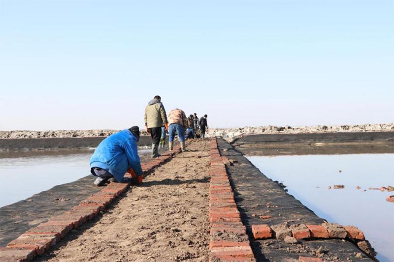 為了做好灘田文明生產(chǎn),長(zhǎng)蘆公司生產(chǎn)一線干部職工積極投入到灘內(nèi)護(hù)氈工作中。截至2021年2月2日,長(zhǎng)蘆公司制鹽四五六工區(qū)共完成護(hù)灘埝修整、護(hù)氈13200米,完成灘內(nèi)池埝護(hù)氈12副灘,累計(jì)完成護(hù)氈面積達(dá)13.3萬平方米。