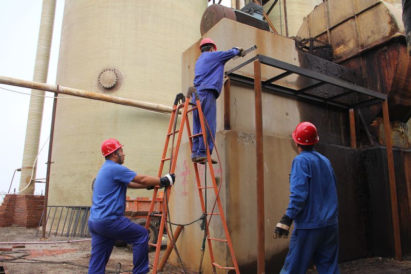 2017年溴素公司成立后,針對(duì)落后的操作工藝和設(shè)備設(shè)施,經(jīng)理李東亮按照集團(tuán)公司產(chǎn)業(yè)升級(jí)的目標(biāo),投入大量資金,帶領(lǐng)干部職工先后對(duì)廠區(qū)及設(shè)備進(jìn)行升級(jí)改造。將溴素二廠水泥吹出塔改造為纏繞式玻璃鋼塔 ,對(duì)危舊房屋進(jìn)行拆除,對(duì)硫磺燃燒車間、職工餐廳進(jìn)行整體搬遷,供電設(shè)施改造成集成箱式變壓器;將溴素三廠吹出塔內(nèi)主鹵水管道改為外置,更換了鹵泵和吹出塔填料,對(duì)鹵水供鹵管道進(jìn)行整改,廠區(qū)全面硬化,兩個(gè)溴素廠面貌為之一新。