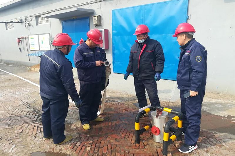演練開(kāi)始前,首先對(duì)職工進(jìn)行了安全理論培訓(xùn)。培訓(xùn)結(jié)束后,參演隊(duì)員在廠(chǎng)區(qū)分別舉行了消防栓使用和氯氣泄漏回收裝置使用操作演練,并對(duì)設(shè)備運(yùn)行進(jìn)行了隱患排查,對(duì)查出的消防水帶連接口密封不嚴(yán)漏水泄壓和氯氣回收裝置堿液輸送管管箍處出現(xiàn)滴漏現(xiàn)象的兩處隱患,由維保人員現(xiàn)場(chǎng)予以維修,排險(xiǎn)了隱患。