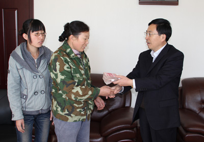 10月25日,當(dāng)董事長(zhǎng)程同海將寄托著1640多名干部職工哀思和祝福的捐款交到王翠榮手中時(shí),王翠榮感動(dòng)得熱淚盈眶,連聲說:謝謝,謝謝大家的關(guān)心。