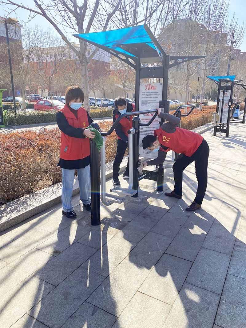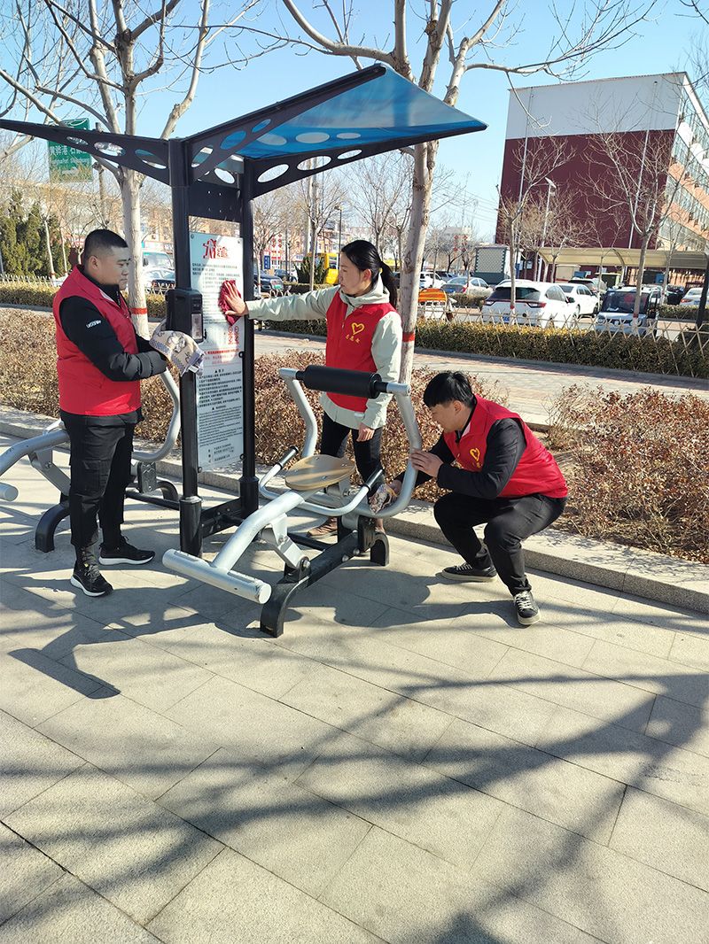 活動中,團(tuán)員青年發(fā)揚(yáng)不怕苦、不怕累的光榮傳統(tǒng),對廣場的健身器械全面擦拭、對花壇、綠化帶、人行道的垃圾、煙頭全面清理,不放過一個(gè)死角。