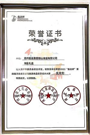 本次大賽由河北省文化和旅游廳、河北省工業(yè)和信息化廳、河北省商務(wù)廳聯(lián)合舉辦,自2022年4月開始啟動(dòng)。為了提升公司產(chǎn)品影響力,提升品牌形象,銀山食鹽有限公司積極準(zhǔn)備,確定以滄鹽牌“海鹽禮盒”為參賽作品。宣傳部配合銀山公司精心準(zhǔn)備,專門派出姬曉曼全程參與設(shè)計(jì)和路演。初賽采取網(wǎng)絡(luò)投票、視頻介紹的方式進(jìn)行。滄鹽牌“海鹽禮盒”經(jīng)過層層選拔篩選,與其他7件作品從全市眾多參賽作品中脫穎而出,代表滄州市入圍河北省文創(chuàng)和旅游商品創(chuàng)意設(shè)計(jì)大賽決賽。2022年12月14日,第四屆河北省文創(chuàng)和旅游商品創(chuàng)意設(shè)計(jì)大賽決賽在石家莊以視頻會(huì)議加網(wǎng)絡(luò)直播的形式舉行,選手通過網(wǎng)絡(luò)進(jìn)行路演,評(píng)審線上進(jìn)行打分。最終,滄鹽牌“海鹽禮盒”榮獲河北省文創(chuàng)和旅游商品創(chuàng)意設(shè)計(jì)大賽優(yōu)秀獎(jiǎng)、滄州市文創(chuàng)和旅游商品設(shè)計(jì)大賽創(chuàng)新創(chuàng)意獎(jiǎng)。
