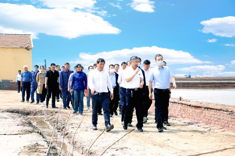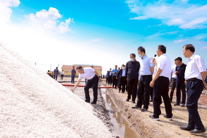 5月14日,國家發(fā)展改革委農(nóng)經(jīng)司司長吳曉帶領(lǐng)財(cái)政部、農(nóng)業(yè)農(nóng)村部、自然資源部、水利部、生態(tài)環(huán)境部、林草局、中國科學(xué)院、中國農(nóng)科院多部委聯(lián)合調(diào)研組來公司調(diào)研,深入長蘆公司詳細(xì)了解原鹽生產(chǎn)情況。河北省相關(guān)單位領(lǐng)導(dǎo),滄州市委常委,渤海新區(qū)黨工委書記、黃驊市委書記董鳴鏑,公司黨委書記、董事長劉建軍,副總經(jīng)理文興峰陪同調(diào)研。