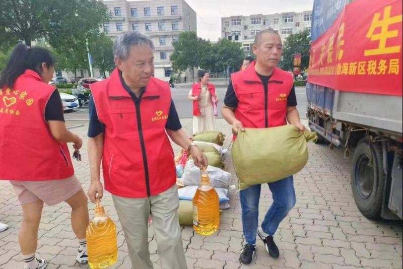 7月29日早晨5時(shí),張?jiān)驍y妻兒與所屬的渤海新區(qū)黃驊市港城區(qū)春暉志愿者團(tuán)隊(duì)聯(lián)合渤海新區(qū)黃驊市紅色朝陽志愿者團(tuán)隊(duì),共計(jì)50余人驅(qū)車四百多公里前往保定淶源愛心互助家園,為當(dāng)?shù)毓鹿牙先思皟和腿チ艘路、被子、鞋、米、油、書包、筆等生活、學(xué)習(xí)物資必需物品。這是張?jiān)蛉业谌稳Z源山區(qū)進(jìn)行志愿服務(wù)。