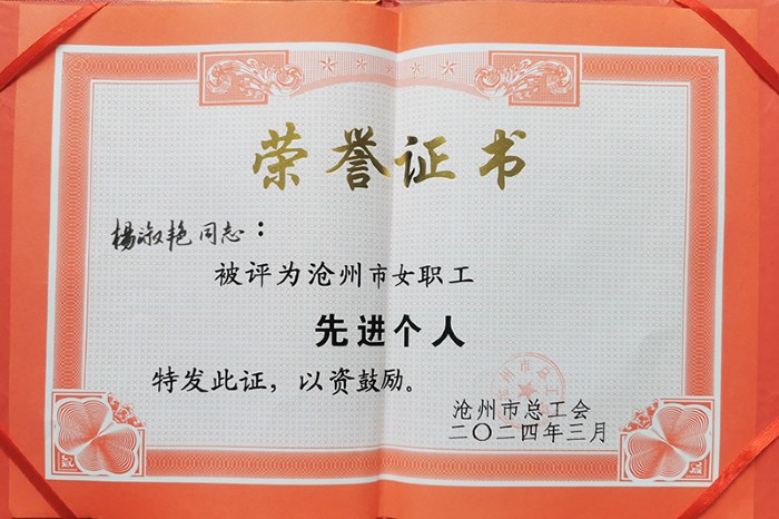 獲獎職工分別接受了滄州市總工會和黃驊市婦聯(lián)的表彰。