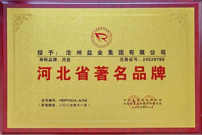 近日,河北省商標(biāo)品牌協(xié)會(huì)組織開(kāi)展的2024年度“河北省著名、知名、優(yōu)秀品牌”評(píng)選結(jié)果正式揭曉,經(jīng)過(guò)嚴(yán)格的評(píng)審和篩選,滄州鹽業(yè)集團(tuán)有限公司注冊(cè)號(hào)為24539786的“滄鹽”牌商標(biāo)被評(píng)定為“河北省著名品牌”,滄州鹽業(yè)集團(tuán)有限公司被授予“河北省商標(biāo)品牌協(xié)會(huì)副會(huì)長(zhǎng)單位”。