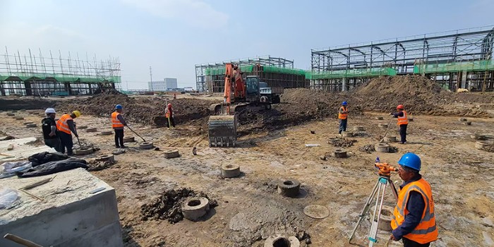 建筑工程公司為確保項(xiàng)目施工進(jìn)度,節(jié)前召開(kāi)專(zhuān)題會(huì)議,對(duì)“五一”期間的施工任務(wù)進(jìn)行詳細(xì)安排,制定了科學(xué)合理的施工計(jì)劃。鳴歧項(xiàng)目為了提高施工進(jìn)度,利用晚上時(shí)間進(jìn)土,晝夜奮戰(zhàn),保障了各個(gè)施工單體及場(chǎng)地基礎(chǔ)回填用土需要,假期期間進(jìn)土1萬(wàn)余方,為后續(xù)施工進(jìn)度奠定了堅(jiān)實(shí)基礎(chǔ)。為確保長(zhǎng)蘆鹽業(yè)公司泵站工程順利推進(jìn),工程技術(shù)部調(diào)配技術(shù)骨干班組,開(kāi)啟了全天候奮戰(zhàn)模式。截至目前,鳴歧項(xiàng)目一、二車(chē)間基礎(chǔ)墻砌筑、圈梁澆筑已完成;港城填方項(xiàng)目已完成噴砂區(qū)填方并通過(guò)驗(yàn)收,其他項(xiàng)目正在加快推進(jìn)中。