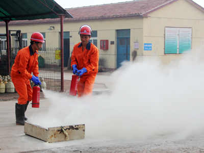 這次演練于8時(shí)30分正式開始,共分兩個(gè)演習(xí)科目,一是模擬火災(zāi)現(xiàn)場(chǎng)救援演練,二是模擬液氯鋼瓶泄漏救援演練。