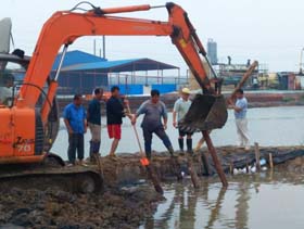 災(zāi)情發(fā)生后,公司干部職工沖上前線,自29日開(kāi)始,制鹽一、二場(chǎng)地勢(shì)低洼灘副的駁鹽溝、導(dǎo)水路水位相續(xù)開(kāi)始漫堤,各場(chǎng)班子親自帶隊(duì),組織場(chǎng)突擊隊(duì)立即進(jìn)行長(zhǎng)埝擋水,在風(fēng)雨中砸樁、護(hù)埝,多日奮戰(zhàn)在抗災(zāi)一線。在整個(gè)強(qiáng)降雨過(guò)程中,灘內(nèi)溝埝局勢(shì)多次告急,排淡溝道水位持續(xù)上漲,鹽碼安全岌岌可危,公司防汛辦晝夜巡查汛情,多次下令各制鹽場(chǎng)要統(tǒng)一行動(dòng),令行禁止,在供電處的大力配合下有序排水,各制鹽隊(duì)都從大局出發(fā),自覺(jué)定時(shí)關(guān)閉一切強(qiáng)排水泵。汛情關(guān)鍵時(shí)刻,公司防汛辦結(jié)合鹽業(yè)裝備制造廠緊急調(diào)用兩臺(tái)挖掘機(jī)坐陣一場(chǎng)、二場(chǎng)、制鹵場(chǎng),做好危埝的加固長(zhǎng)高和疏通排淡工作,并及時(shí)貫通一、二場(chǎng)排淡系統(tǒng),對(duì)二場(chǎng)過(guò)高的警戒水位進(jìn)行有效的疏導(dǎo)。制鹽三場(chǎng)、制鹵場(chǎng)也及時(shí)組織人員,對(duì)儲(chǔ)鹵汪子土埝出現(xiàn)潰溢的地段進(jìn)行了排險(xiǎn)加固。災(zāi)情牽動(dòng)著各級(jí)領(lǐng)導(dǎo)的心,在險(xiǎn)情最危急時(shí)刻,董事長(zhǎng)劉建軍夜間來(lái)到現(xiàn)場(chǎng)巡視災(zāi)情,慰問(wèn)職工,指導(dǎo)救災(zāi)工作;公司防汛指揮部成員也來(lái)到汛情嚴(yán)重的制鹽一、二場(chǎng)參與搶險(xiǎn)工作;鹽業(yè)裝備制造廠、供電處、供應(yīng)處、筑裝處按照公司防汛指揮部統(tǒng)一安排,出動(dòng)70余人組成的搶險(xiǎn)突擊隊(duì)冒雨和二場(chǎng)全體干部職工一起搶險(xiǎn)救災(zāi)。在整個(gè)抗災(zāi)搶險(xiǎn)過(guò)程中,全公司先后投入編織袋32500條,木樁3186根,人工護(hù)埝20190米,動(dòng)用機(jī)械設(shè)備護(hù)埝10220米,清淤場(chǎng)區(qū)周邊堵卡地段17處。