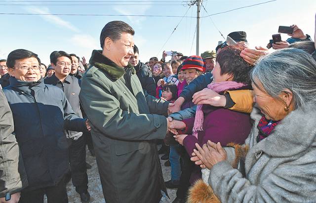 2017年1月24日,中共中央總書記、國家主席、中央軍委主席習近平來到河北省張家口市,看望慰問基層干部群眾,考察脫貧攻堅工作。這是習近平在張北縣小二臺鎮(zhèn)德勝村看望慰問村民,向鄉(xiāng)親們拜年。(資料片)新華社發(fā)