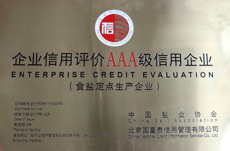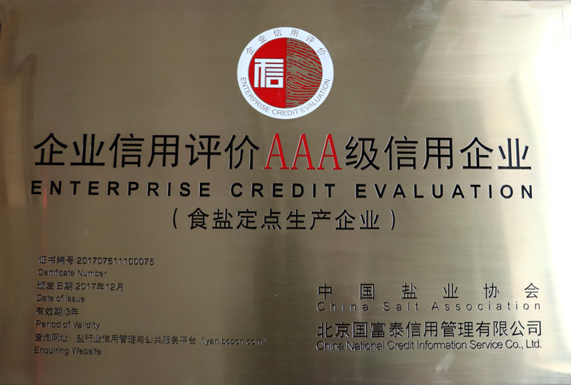 此次評定是經(jīng)第三方專業(yè)評價機構嚴格評價和中國鹽業(yè)企業(yè)信用等級評價委員會審核,并通過向社會公示無異議,評定出56家AAA級食鹽定點生產(chǎn)企業(yè)。