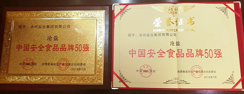 7月28日,在《中國食品報》和中國食品安全產(chǎn)品產(chǎn)業(yè)發(fā)展論壇組委會共同舉辦的“2018中國食品安全產(chǎn)業(yè)發(fā)展論壇暨放心食品品牌推廣活動”全國評選大會上,滄州鹽業(yè)集團有限公司和滄鹽集團銀山食鹽有限公司生產(chǎn)的“滄鹽”牌食用鹽分別獲得“2018中國安全食品品牌50強”、“2018中國安全食品(行業(yè))十大消費者滿意品牌”殊榮。這是“滄鹽”牌食鹽又一次獲得全國性大獎。